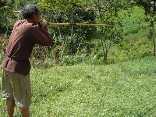Vi fik ogsaa set og proevet at puste med giftpile, det var en gammel jagtmaade de brugte for at skaffe foede, dem vi proevde, var dog ikke indsmurt i gift.